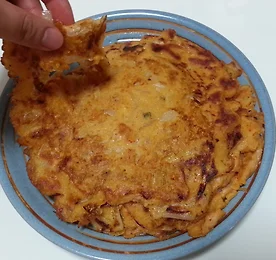 퇴근 후, 집에서 뭘 먹을까 고민하며 뒤적이다가, 부친개 가루를 발견했다.그런데다 부친개 가루의유효기간이 1월 말까지.. 지금아니면 못먹을거 같아서 김치전을 만들기로 했다. 직장인들의 월요병이 돋는 오늘은...장보러 가기도 귀찮아서, 집에 있는것만 넣어 전을 만들기로 했다.재료는, 부친개가루, 콩비지가루(おからパウダー), 달걀 1개, 양파 1/2개, 마늘 1/2개, 김치(적당히) 남은 부친개 가루가 200 g정도였는데, 유효기간이 아슬아슬한 관계로 모두 사용했다. 여기에 계란 1개와 물 400 CC정도 넣고 젓는다. 그리고, 나는 '콩비지가루(おから)'='비지 파우더' 를 넣었다. 콩비지 가루는, 일본어로 '오카라(おから)'라고 하는데, 두부를 제조하는 과정에서 대두로 두유를 짠 후 남은것, 즉 비지를 ..